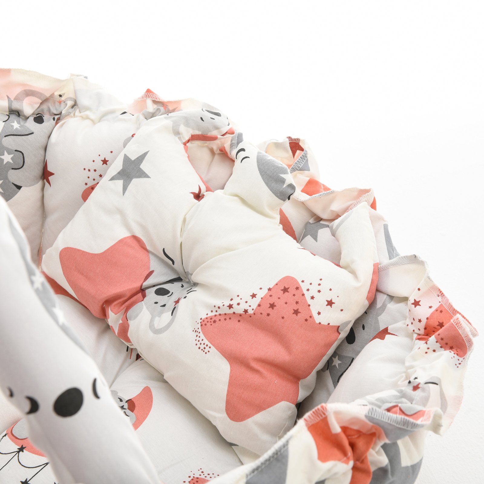 Our baby nest with soft toys and mosquito net is the perfect solution for parents seeking a comfortable and secure sleeping bed for newborns and infants. Designed for ultimate convenience, this portable baby bed features soft cushioned edges that create a cozy environment, ensuring your baby sleeps safely and soundly.