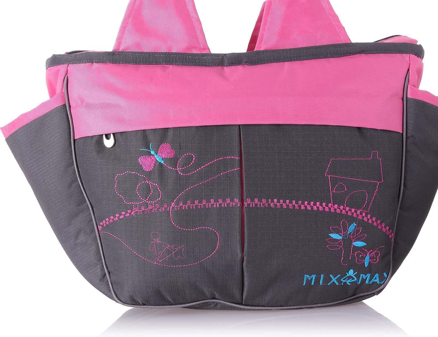 حقيبة كتف جلدية للحفاضات مع تطريز (فوشيا منزلي) - مكس وماكس - الألوان: البيج والأزرق والأحمر الداكن - المقاسات: 0-9 M