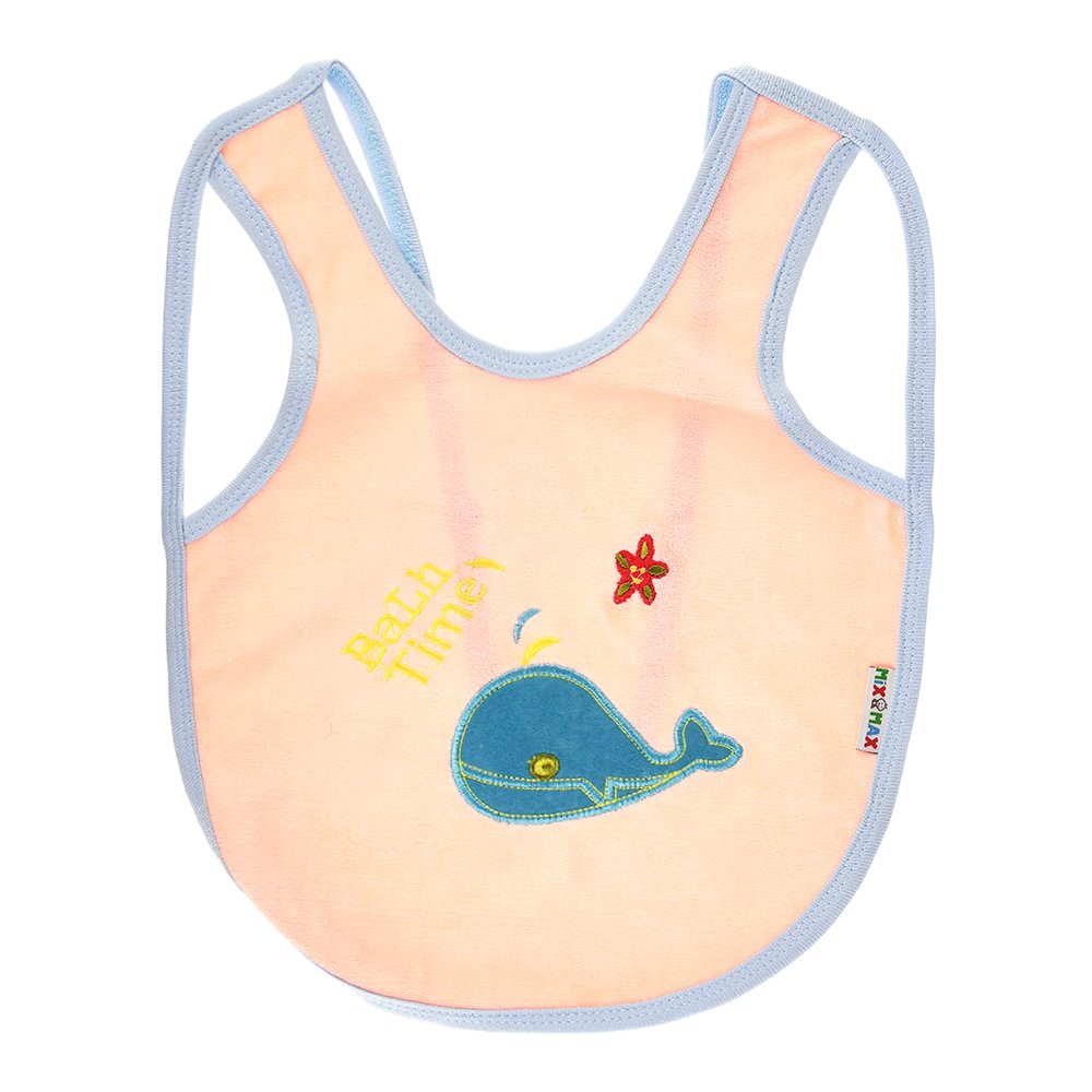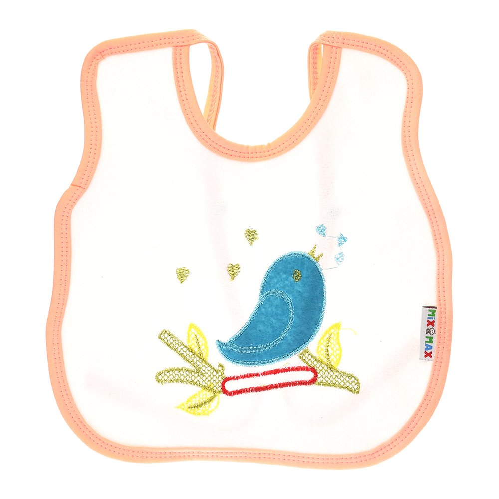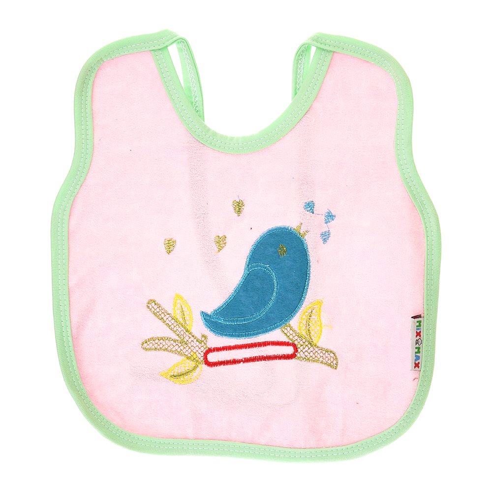 Multi-color Bib with embroidery diaper back size 38*29cm (2 Pieces) – Mix and Max – Colors: Fuchsia, Grey, and Light Blue – Sizes: 0-18