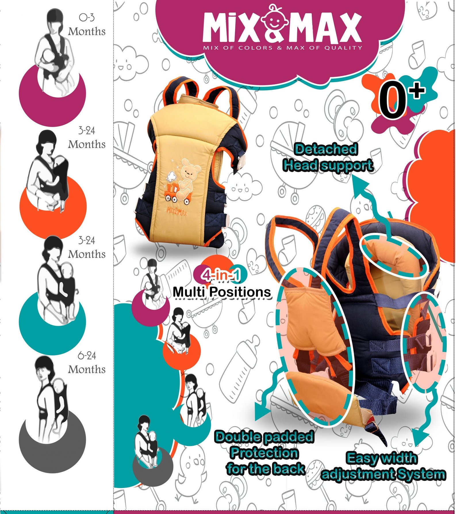 Baby Carrier 4 Positions 4 in 1 Light Blue# 319 Mix and Max – Sizes: 0-24 M