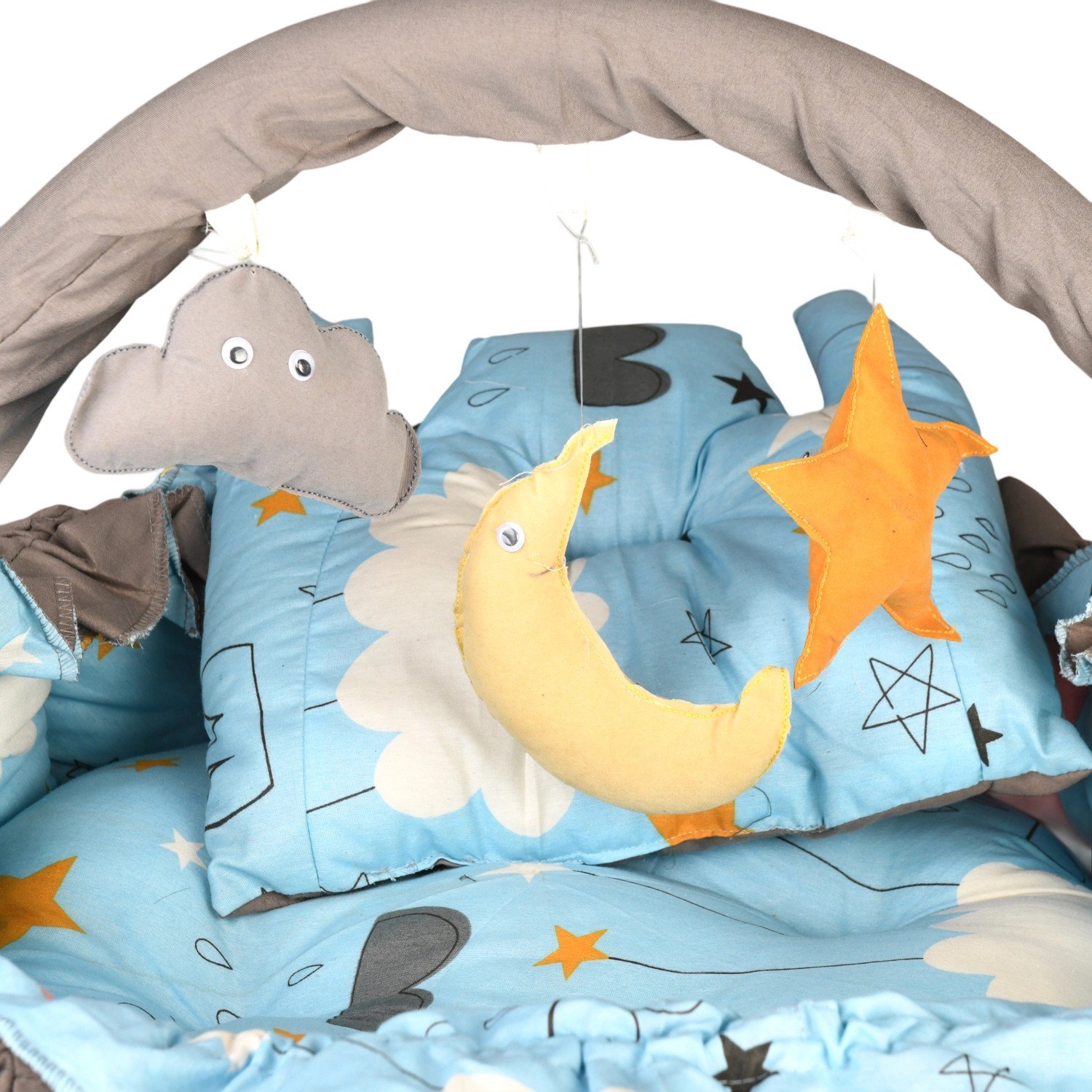 Baby Nest with Soft Toys and Mosquito Net – Comfortable Infant Sleeping Bed Light blue Mix and Max