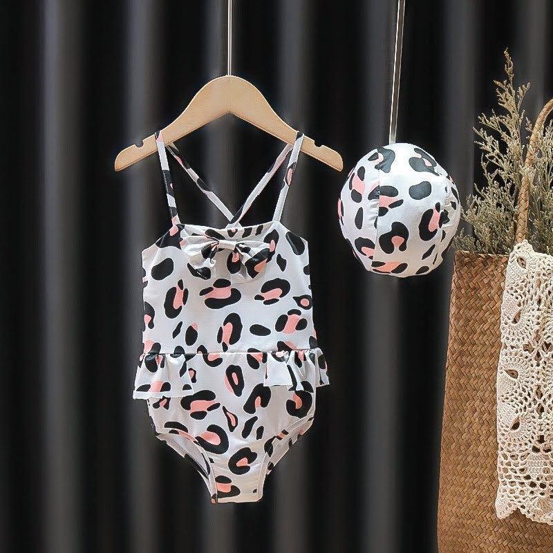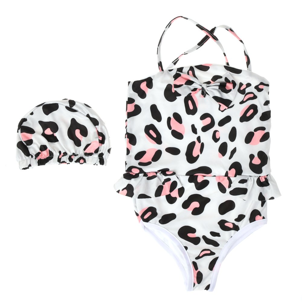 Girls Swimsuit and Swimming Cap Printed Circles Set of 2 pieces Two Piece Swimsuit (4 sizes From 6M to 4Y) # 32 – Mix and Max – Sizes: From XL 2-3 Y to L 12-18 M
