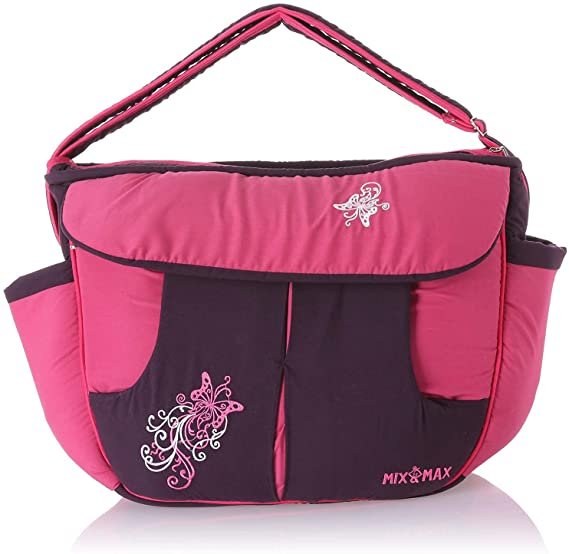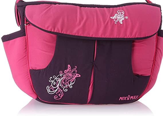 Mix and Max Baby Changing Diaper Large Shoulder bag with embroidery ( Fly Fushia )