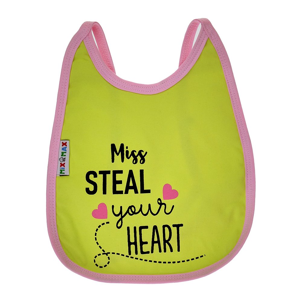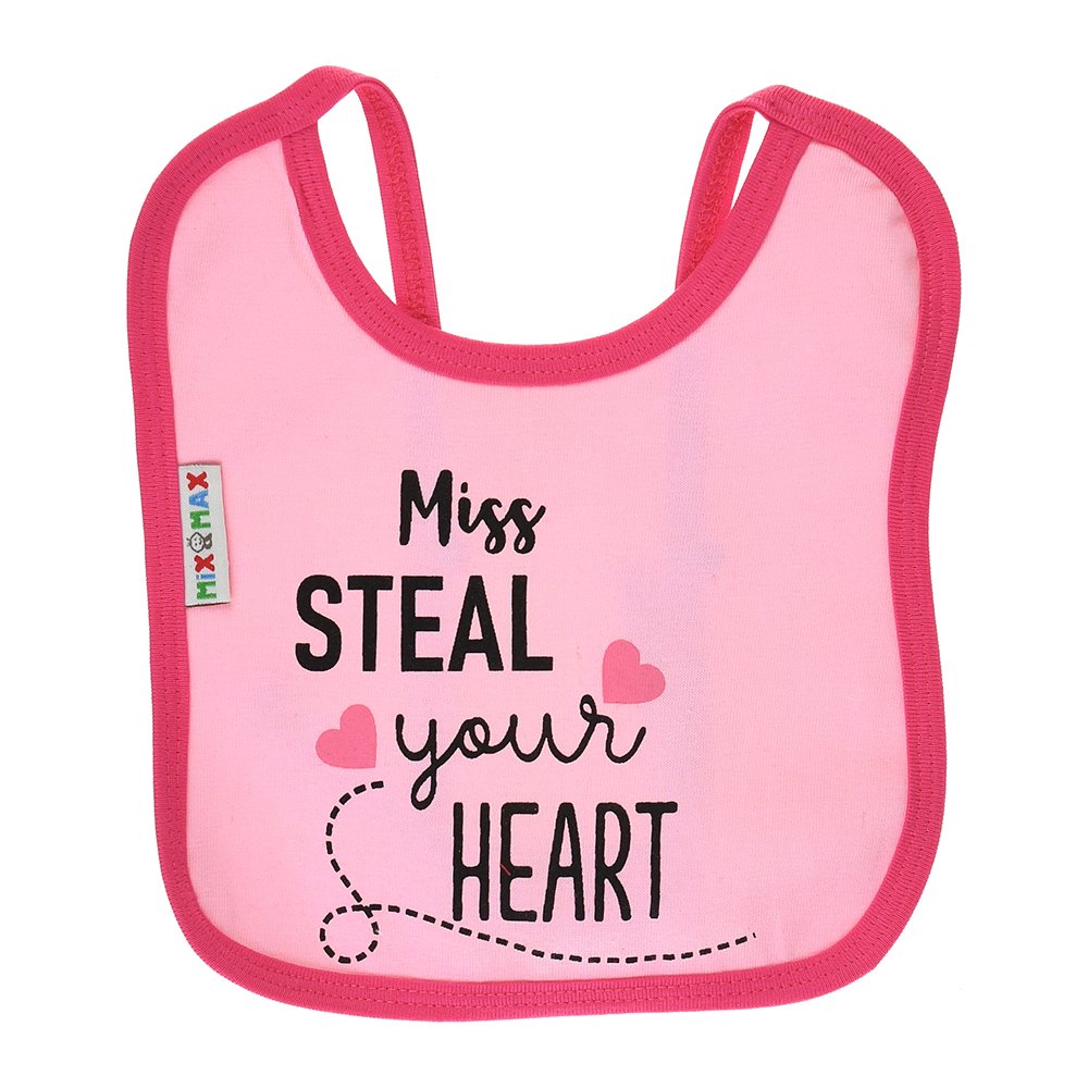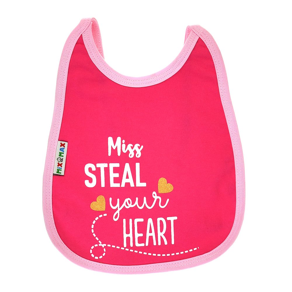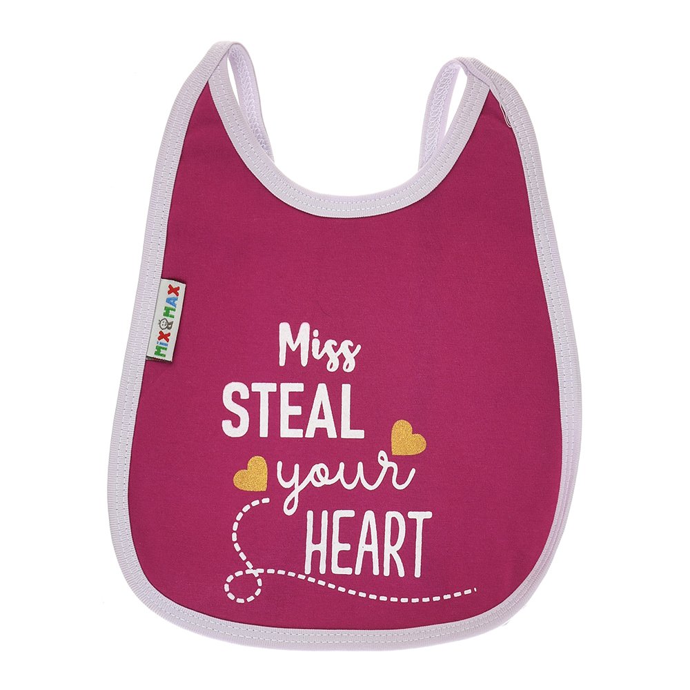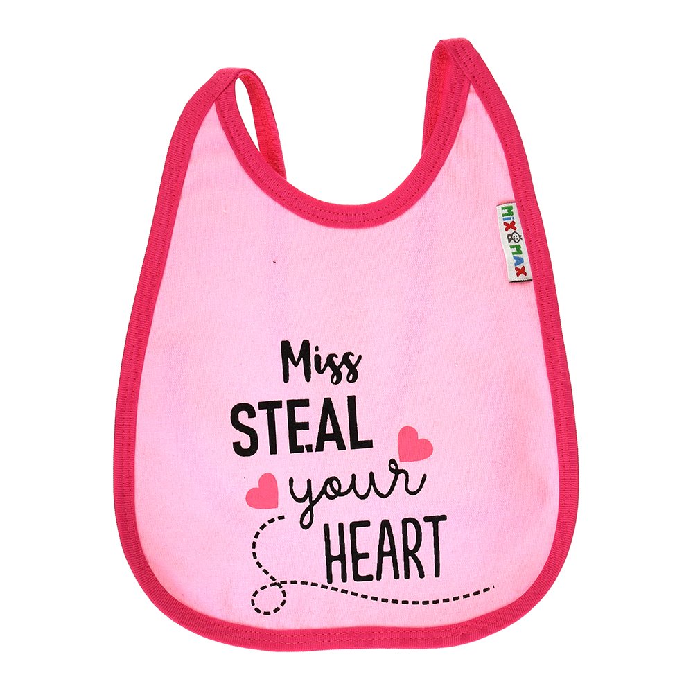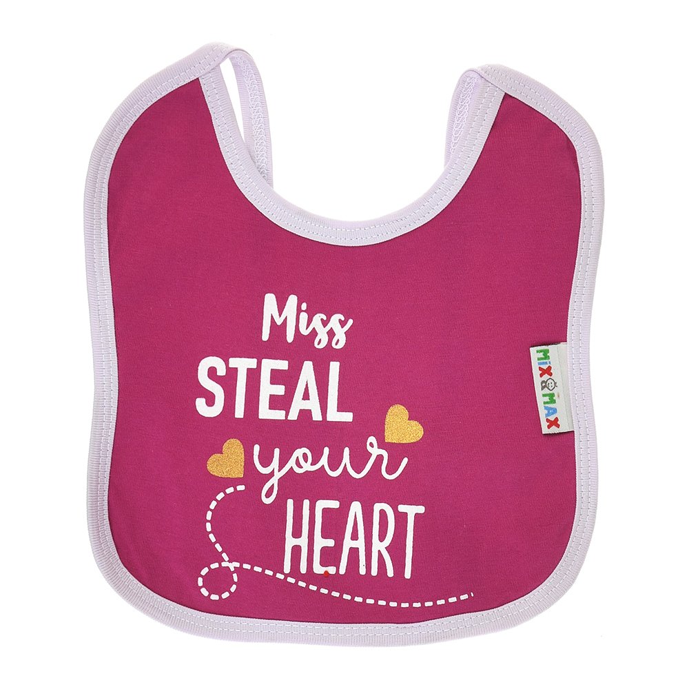 Multi-colors Printed Bib with diaper back Average size 27*19cm (2 Pieces) Girl g – Mix and Max – Colors: Fuchsia, Grey, and Light Blue – Sizes: 0-18