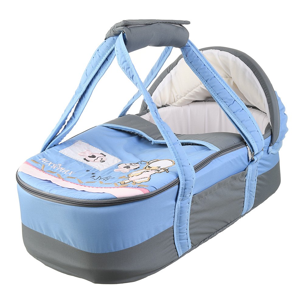 Crafted with high-quality microfiber and soft cotton lining, it provides gentle support for your baby’s delicate skin while ensuring durability for long-lasting use. The strong padded shoulder handles allow you to carry your baby safely, while the cushioned mattress and protective sidewalls keep your infant secure and comfortable.