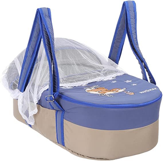 Portable Baby Carrycot Portable Bed Lightweight Carrycot ( Bear on Moon Blue color ) – Sizes: 0-12 M – Mix and Max