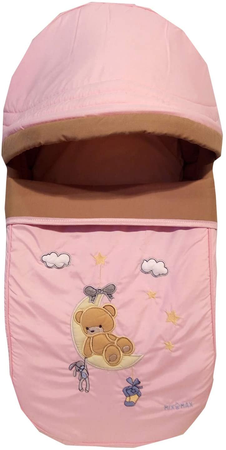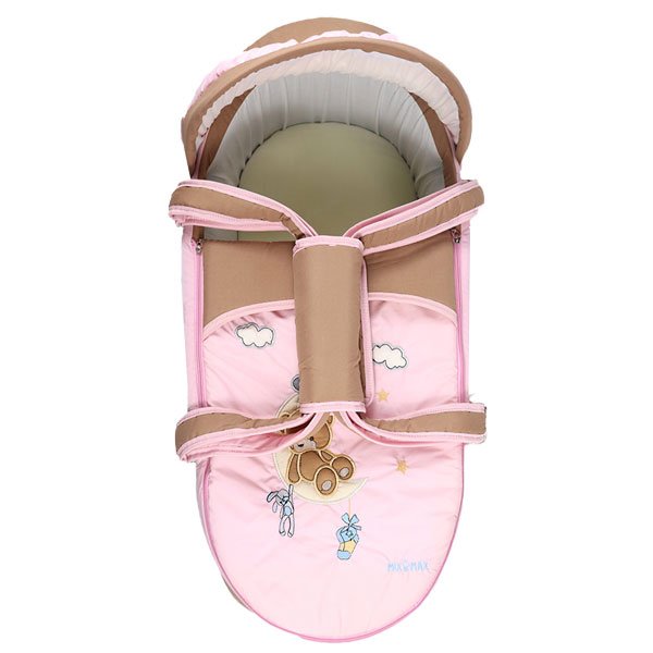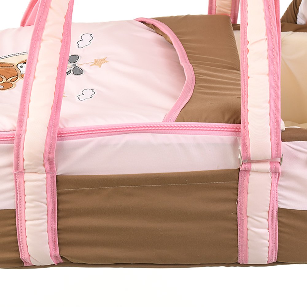 Portable Baby Carrycot Portable Bed Lightweight Carrycot ( Bear on Moon Pink color ) – Sizes: 0-12 M – Mix and Max