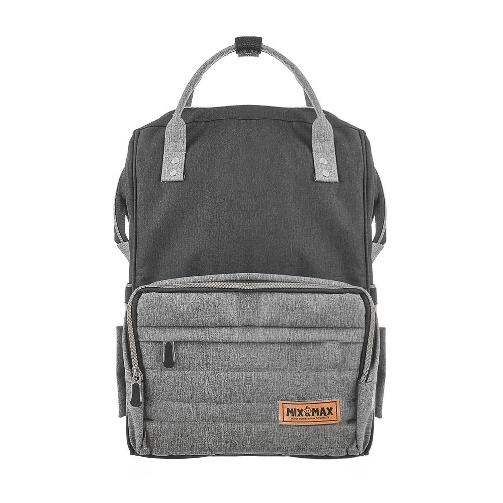 Premium Elegant Mum Large Diaper Backpack bag waterproof – Mix and Max – Grey and Black